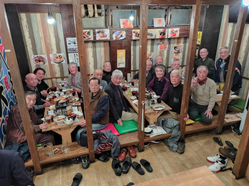 忘年会開催 投稿日: 2025-12-04 10:09 サイト管理人(44E) コメント 昨日3日に磯丸水産千葉駅前店にて千葉市支部の忘年会を開催しました。 管理人は病気療養中ですので不参加でしたが、16名の参加があり、盛大な忘年会となりました。 これにて本年度の行事は全て終了となりました。 皆様のご協力ご支援に御礼申し上げます。 来期は会員の体力に見合った行事を検討しております。 皆様のご参加をお願い致します。 📂投稿グループ お知らせ